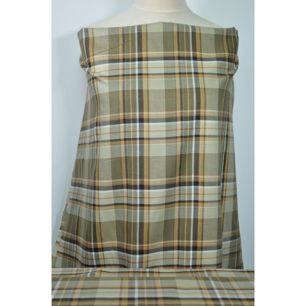 Károvaný popelín, převažuje béžová barva