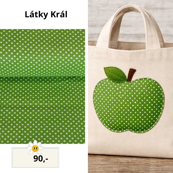 Popis: bavlna, zelená barva s bílým puntíkem cca 2 mm