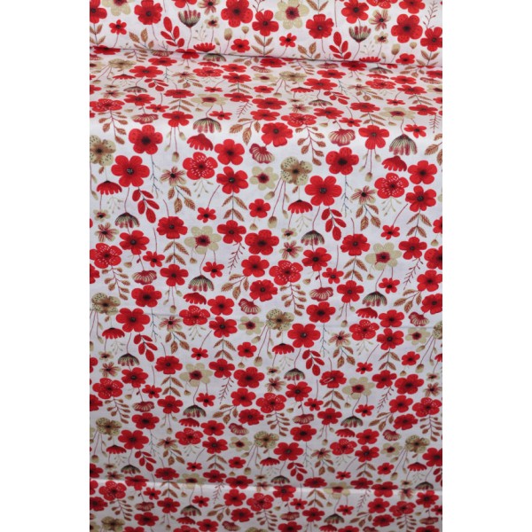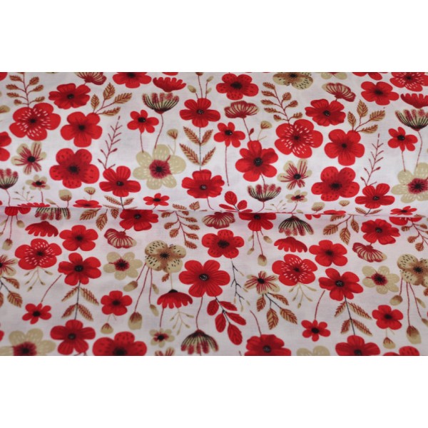 Bavlna s červenými a béžovými kytičkami